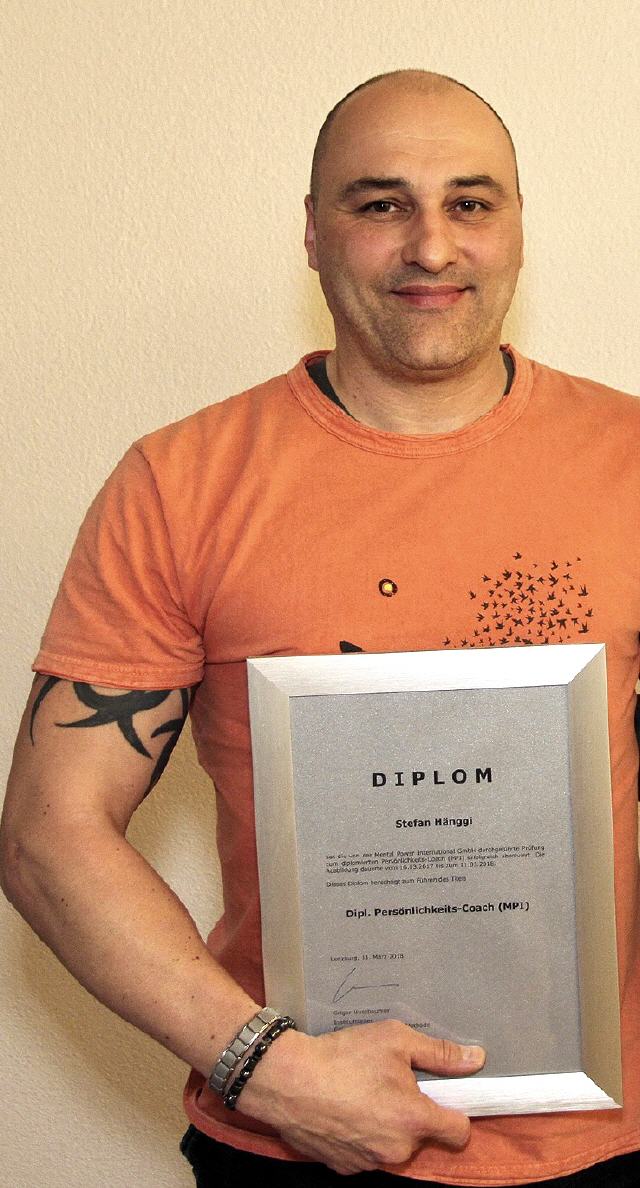 Im März 2017 startete ich zur Ausbildung zum ganzheitlichen Persönlichkeits Coach (Mental Power International GmbH), die ich ein Jahr später erfolgreich abgeschlossen habe. Während dieser Ausbildung habe ich mich immer wieder neu kennen gelernt und konnte frühere Erlebnisse und ein tiefgreifendes Trauma endlich für mich heilen und abschliessen. Mit dieser Ausbildung ist es mir nun möglich, auch Dir zu helfen. Deine Blockaden zu lösen, Deinen Stress zu bewältigen und Dein volles Potential zu leben. Melde Dich bei mir, damit wir zusammen eine Strategie vereinbaren können, damit auch Du wieder unbeschwert Deinen Lebensweg gehen kannst. |